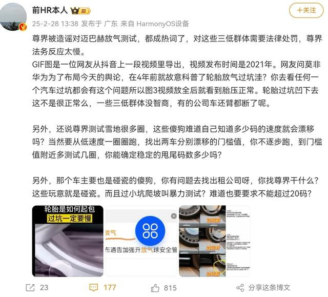 每次华为合作的车企出新车的时候都会掀起很大舆论,享界S9一出来就冒出来飞坡事件,尊界还没发布就被整了这一出,一个跟尊界扯不上半毛钱的关系的事情,被炒作成这样,很难不让人怀疑是有人故意为之!